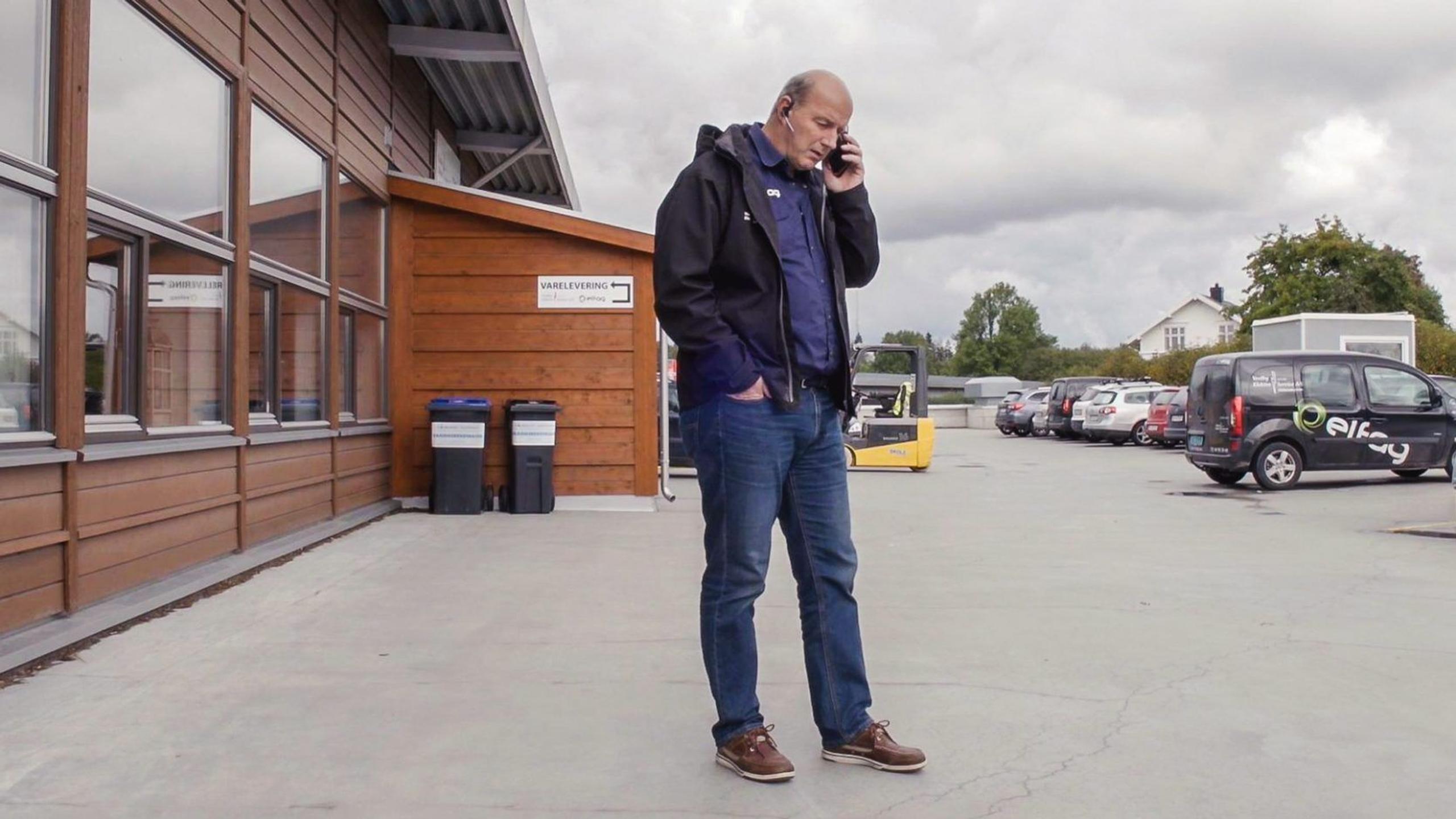 Som serviceleder bruker Håkon Eriksen mye av dagen i telefon.