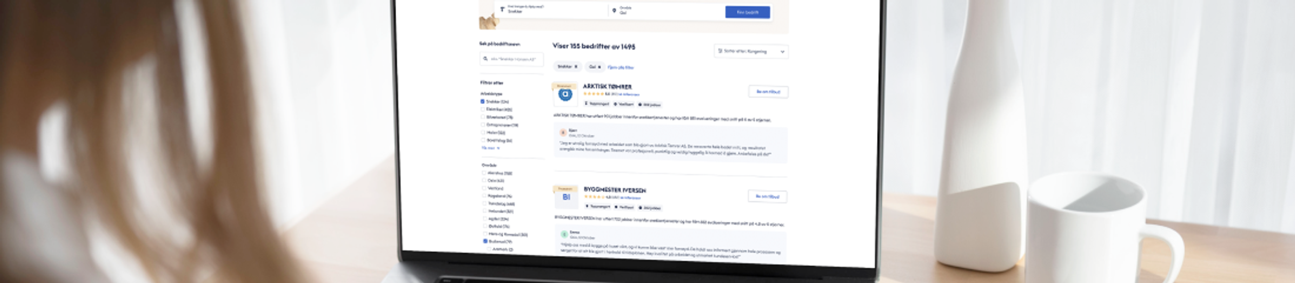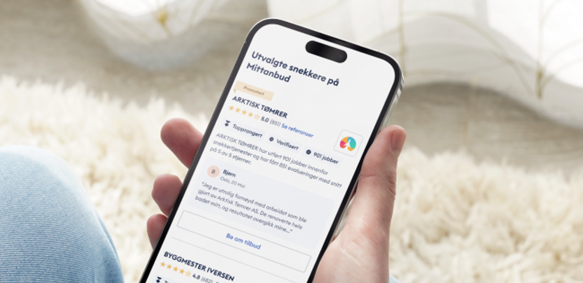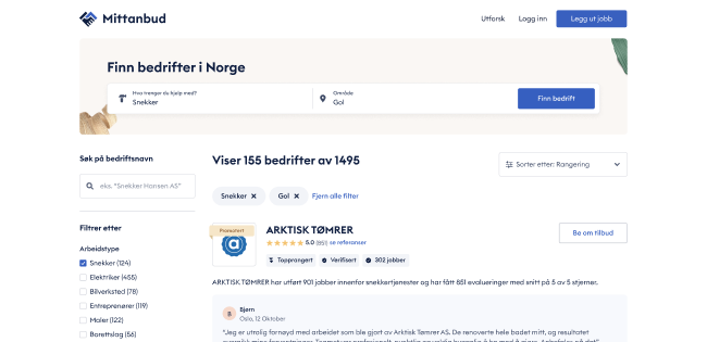 Bedriften din vil bli promotert på flere sider på Mittanbud hvor forbrukere søker etter håndverkere, for eksempel i bedriftssøket, relevante geografiske sider eller direkte til forbrukeren som har lagt ut en jobb.